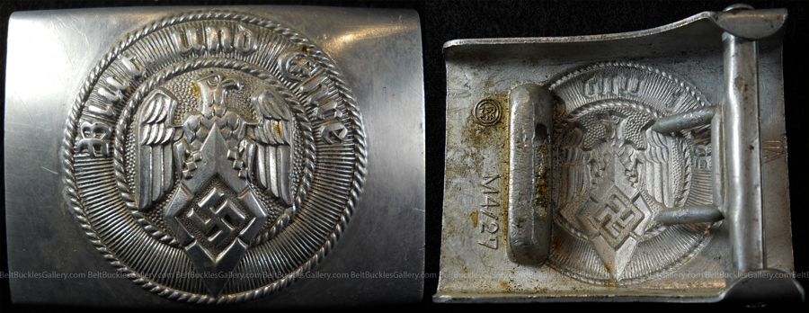 Otevřená spona pro vůdce HJ Spona je z počátku zavedení RZM kódování, je značena M5 místo pozdějšího značení M4. Výrobce: RZM M5/239 - Ernst L. Müller, Pforzheim |